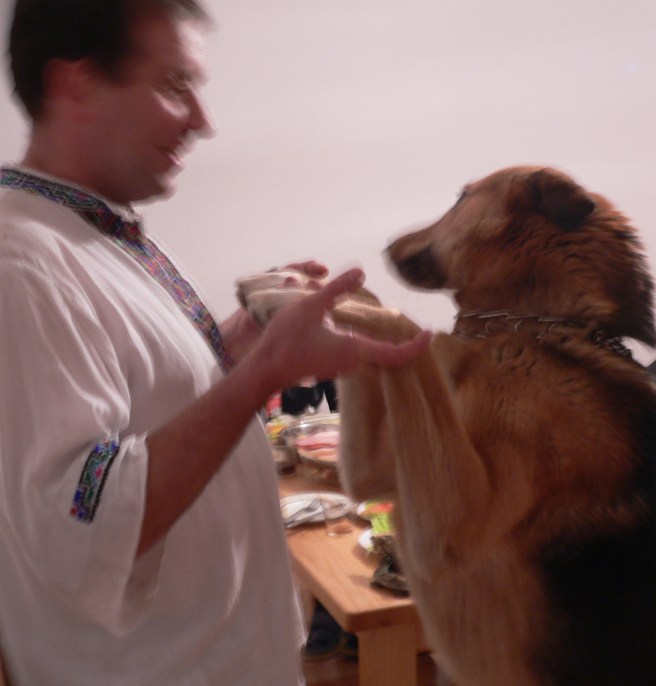 Vorausschauend wechseln wir schon jetzt von Warka zu Wodka. Feiern zudem vorläufig zu dritt. Schließlich sollte keine Ressource ungenutzt bleiben. Stefan darf freilich nur ausnahmsweise mittun. Damit die Party nicht gar so fad losgeht. Die gewonnen 100% Bein beleben die Stube ungemein. Der Hofhund ist heute einmal Haushund, Partylöwe, Trostzamperl.